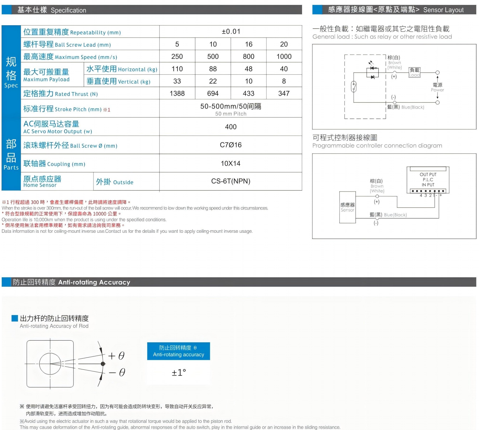 本体宽幅 65mm 最大行程 500mm 最大荷重 110kg