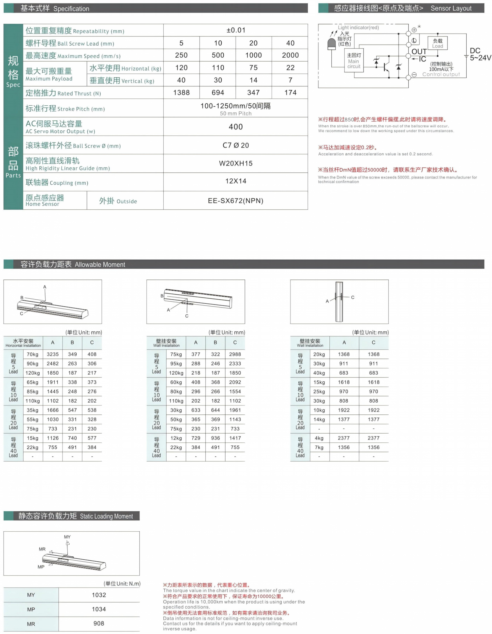 最大行程:1250mm