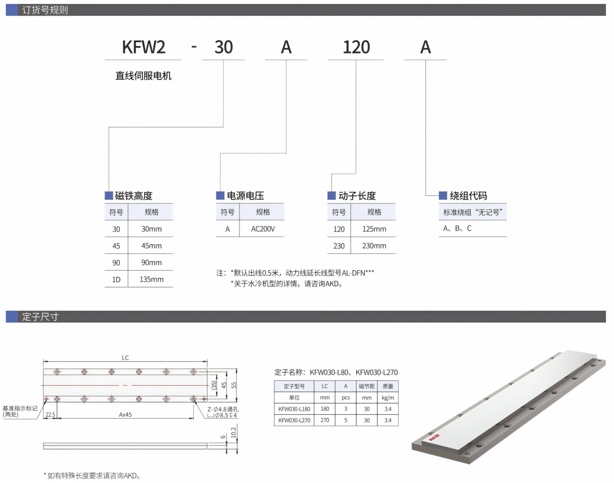 KFW2有铁芯直线电机动定子